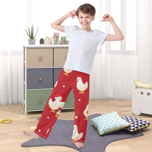 ZZXXB Chicken Snow Boys Long Pants Soft Trousers Elastic Waist Kids Lounge Bottoms with Pockets S-XL 1