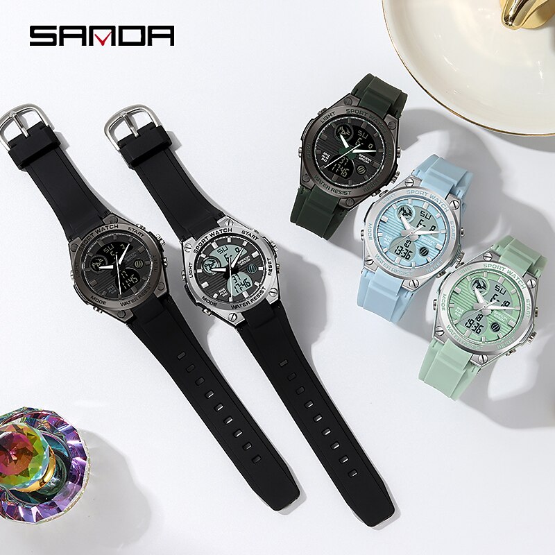 SANDA 6067 Digital Watch Women Sport Chronograph Calendar Lady Quartz Wristwatch 50m Waterproof Female Girl Electronic Clock 11