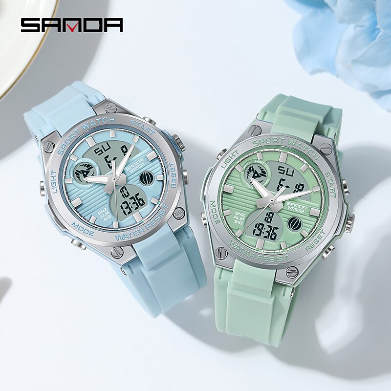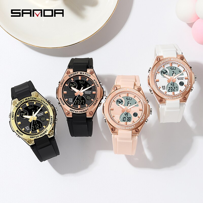 SANDA 6067 Digital Watch Women Sport Chronograph Calendar Lady Quartz Wristwatch 50m Waterproof Female Girl Electronic Clock 6