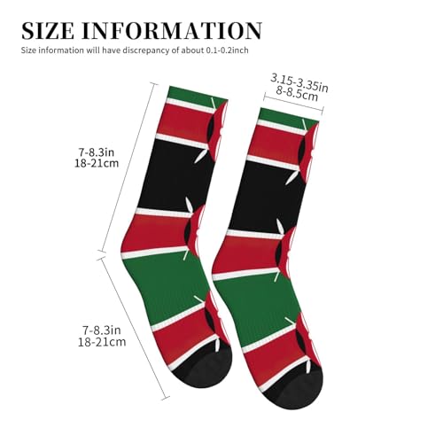 • Durability: These Flag Of Kenya Socks' Reinforced Heel And Toe Help Enhance Durability To Improve Product Life In High Wear Areas.Right Thickness Makes Mid Calf Socks Suitable For All Seasons.Provides Support And Stability For A Better Fit,For Enhanced Comfort.