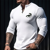 More information about Men's Graphic Crocodile Henley Shirt Waffle T Shirt Long Sleeve 3D Print Fashion Designer Casual Sports Outdoor Casual Holiday Spring & Fall White Pink Blue Beige Henley Henley T-Shirt