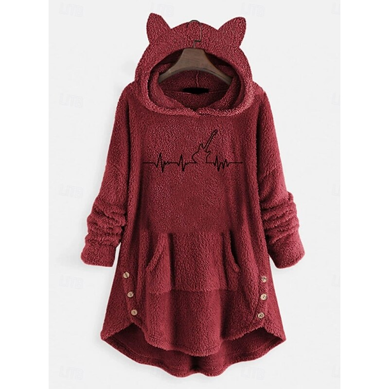 More information about Women's Pullover Hoodie Sweatshirt Graphic Casual Long Sleeve Hooded Long Tops Street Dailywear Casual Pink Wine Gray Fall Winter
