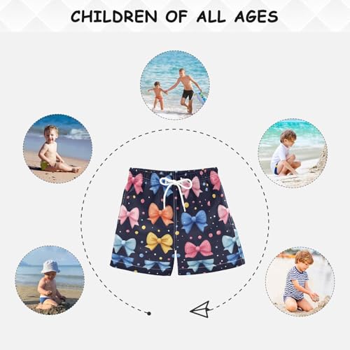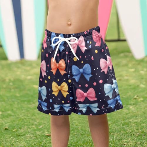 Pigsaly Boys Swim Trunks Polka Dots Ribbon 80s 90s Colorful Bow Boys Board Shorts Swimsuit Swimwear Summer Bathing Suit 4T 3