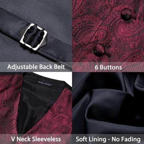 YOHOWA Mens Suit Vest Silk Tie Bowtie Set Paisley Jacquard Formal Waistcoat Clip Hanky Cufflinks Lapel Pin Wedding Party 8PCS 6