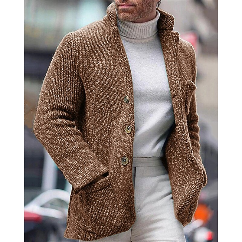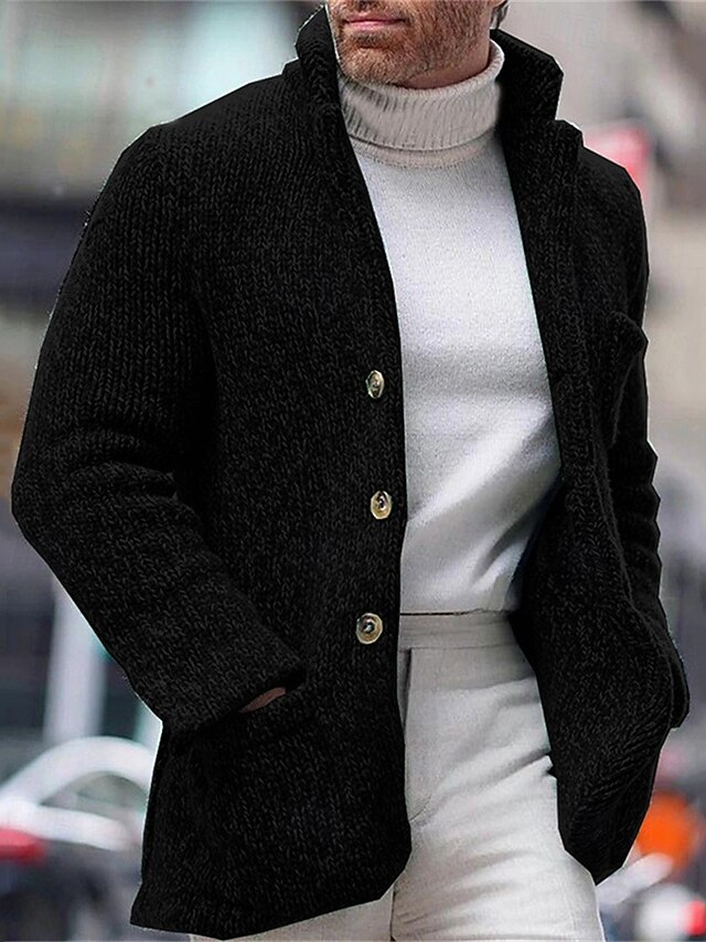 More information about Men's Cardigan Sweater Dress Sweater Cropped Sweater Ribbed Knit Regular Button Up Pocket Solid Color Stand Collar Fashion Classic Daily Wear Date Clothing Apparel Fall & Winter Black Green S M L