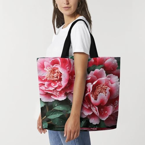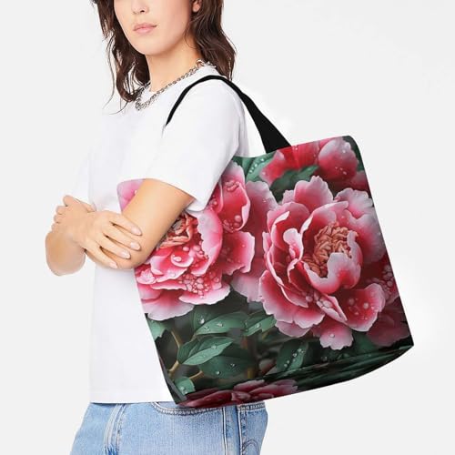 Beautiful Peony Flower Large Grocery Tote Bag Women Fashion Handbag Duty Reusable Shoulder Bag for Travel Vacation Shopping Beach Bags 6