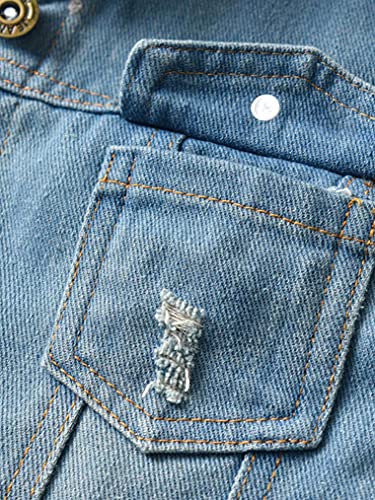 More information about Girls Boys Plaid Hoodie Ripped Denim Jackets Button Down Casual Coat Outerwear with Pockets for Autumn