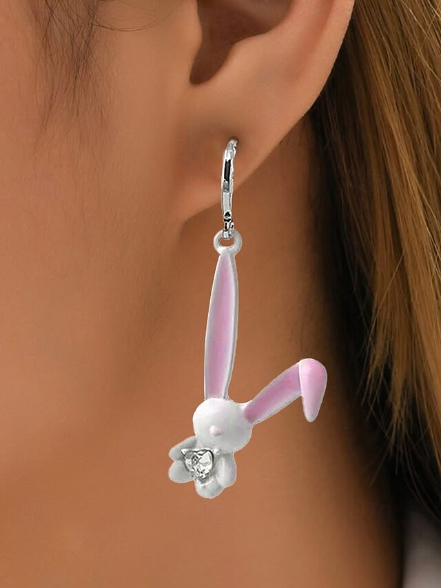 $7.99 - Women's Easter 3D Bunny Rabbit Earrings - Cute bunny design with pink ears and diamond accents, sterling silver hoop, fun and playful jewelry for Easter, casual wear and spring events 2025. Shop for cheap Women's Earring online? Buy at lightinthebox.com on sale today!