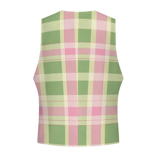 Green Pink Plaid Men's Suit Vests Dress Vest V-Neck Waistcoat Slim Business Formal with Pocket 1