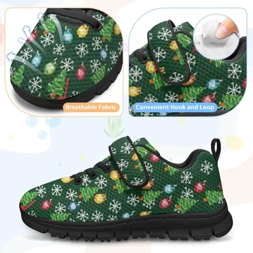 Kids Christmas Shoes for Girls Boys Single Buckle Sneakers Breathable Lightweight Mesh Running Walking Shoes 6