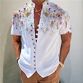 Highlights [Fabric]: Crafted from high-quality polyester, this men's short-sleeve shirt is lightweight and breathable, making it ideal for spring and summer wear. The fabric ensures durability and comfort, perfect for warm weather. [Fit]: The shirt offers a regular fit that combines comfort and style, providing ease of movement and a flattering silhouette for any body type. [Design Highlights]: Featuring a vibrant floral print, this shirt stands out with its classic button-down front and decorative buttons. The stand collar adds a touch of sophistication, making it versatile for both casual outings and semi-formal occasions. [Occasions]: Suitable for a variety of events such as vacations, street outings, and daily wear, this shirt effortlessly combines casual streetwear with a fashionable designer look, appealing to various style preferences. [Size Range]: Available in a wide range of sizes including S, M, L, XL, 2XL, and 3XL, ensuring a great fit for different body sizes and preferences.