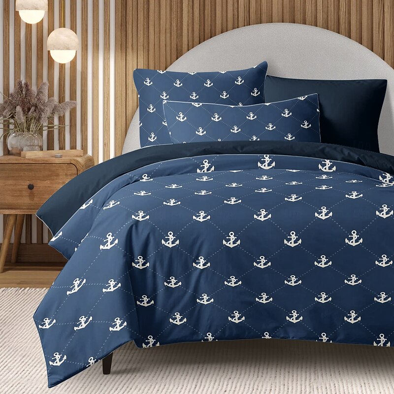 Anchor Duvet Cover Set, Nautical Theme Bedding, Soft Microfiber, Includes Duvet Cover & Pillowcases, Fade-Resistant, Zipper Closure, Machine Washable, Available in Queen, King, and Twin Size 10