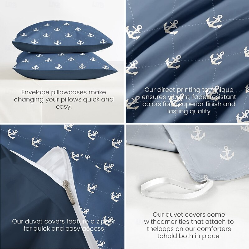 $63.99 - Anchor Duvet Cover Set, Nautical Theme Bedding, Soft Microfiber, Includes Duvet Cover & Pillowcases, Fade-Resistant, Zipper Closure, Machine Washable, Available in Queen, King, and Twin Size 2025. Shop for cheap 100% Cotton online? Buy at lightinthebox.com on sale today!