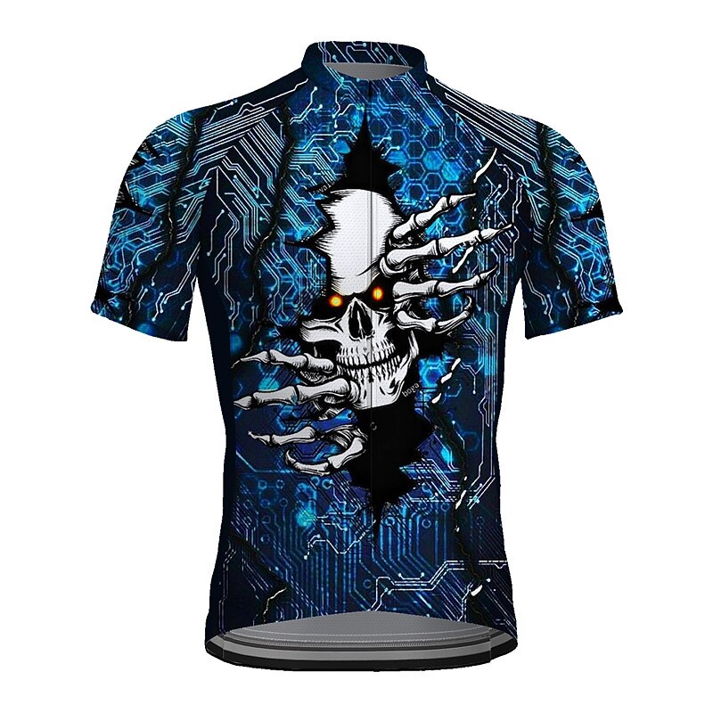 Men's Cycling Jersey Skull Letter & Number Funny Short Sleeve Bike Tee Tshirt Top with 3 Rear Pockets Mountain Bike MTB Road Bike Cycling Quick Dry Reflective Strips Back Pocket Moisture Wicking 17