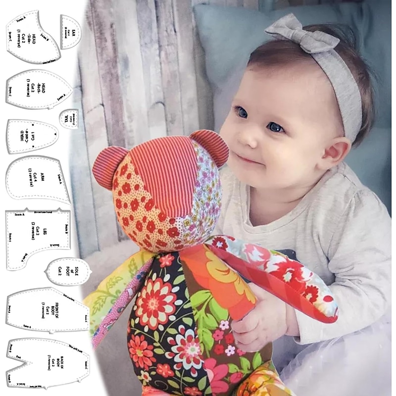 HOT ! Memory Bear Template Ruler Set with Instructions, Memory Bear Sewing Template Ruler, DIY Gifts for Halloween Christmas Birthday, Memory Bear Template Ruler Set 10PCS