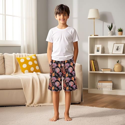 ALAZA Seashell Coral Reef Black Pajama Shorts Elastic Waist Casual Sleep Shorts with Pockets Size 6-14 5