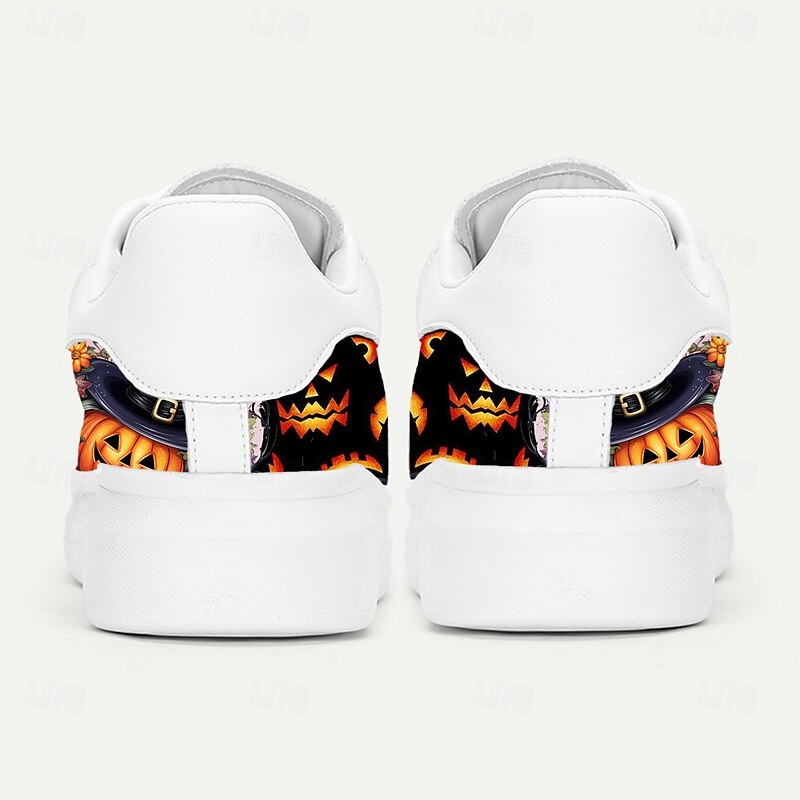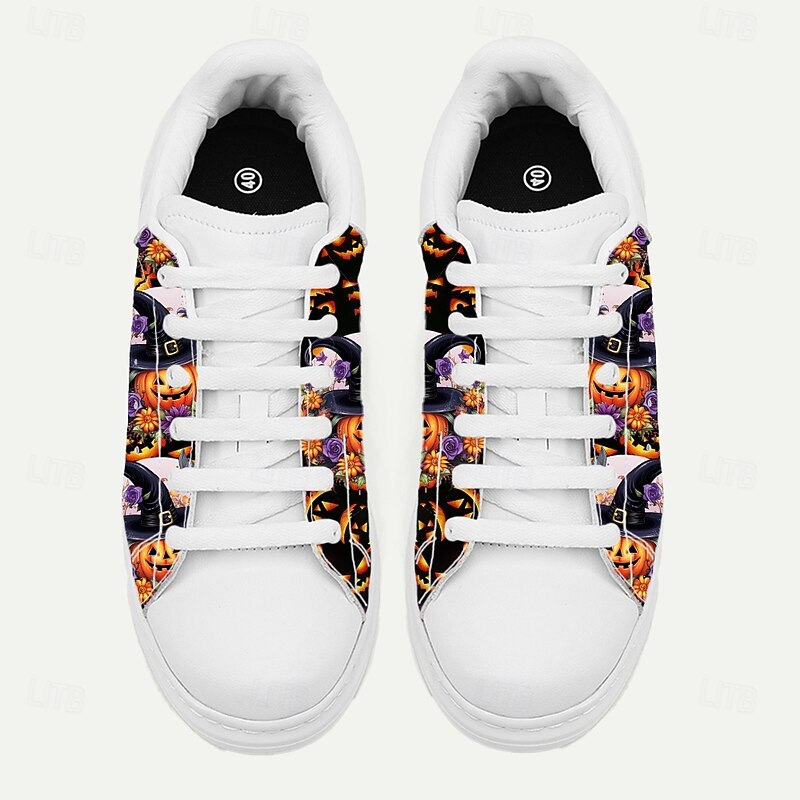 HOT ! Men's White Sneakers with Colorful Pumpkin and Witch Pattern for Halloween Costumes, Festivals and Themed Events