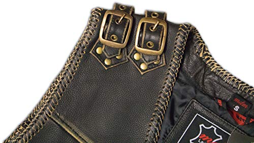 Men's Motorcycle Leather Vest Cowhide in Used Look Retro Style 4