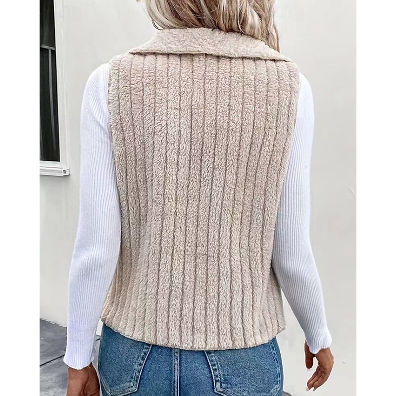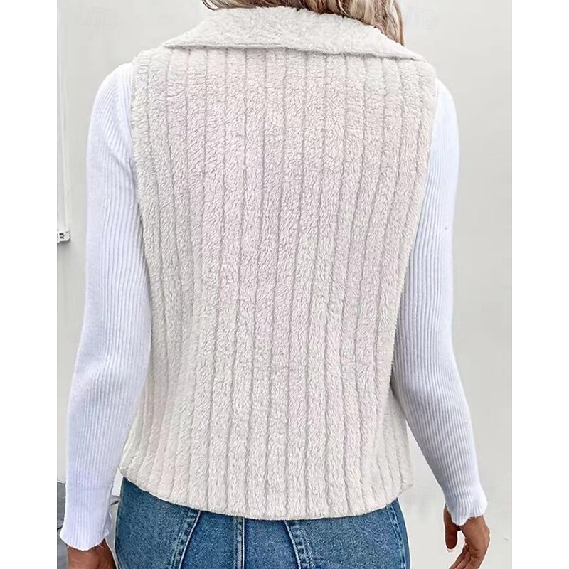 Women's Vest Warm Comfortable Zipper Casual Plain Vacation Street Casual Daily Wear Regular Turndown Regular Fit Sleeveless Outerwear Black White Blue Fall Winter 12