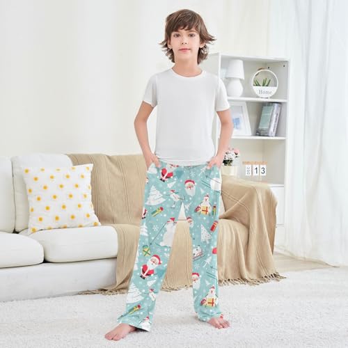 Skating Santa Snowman Boys Long Pants Soft Trousers Elastic Waist Kids Lounge Bottoms with Pockets S-XL 4