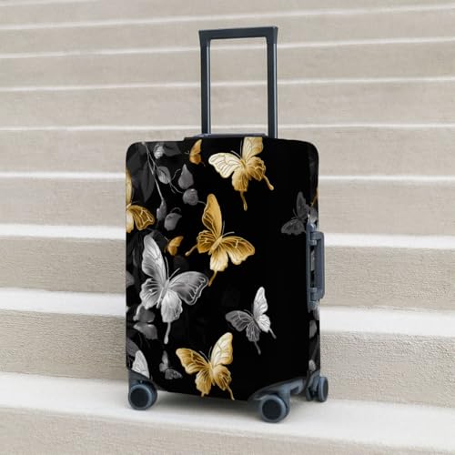 HOT ! Gold Grey Butterfly Pattern Stretchable Luggage Covers for Suitcase TSA Approved, Dust Proof and Scratch Resistant Travel Luggage Protector for Carry On (22-24 in)