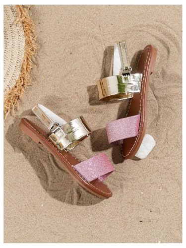 GORGLITTER Girl's Sparkling Metallic Dressy Flats Open Toe Ankle Strap Cute Vacation Slide Sandals 6