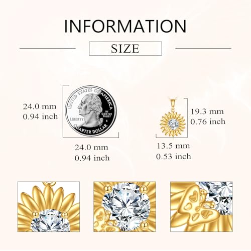 • 🌻Quality Material🌻: 14K yellow gold sunflower necklace is made of 58.5% pure gold (14k real gold), hypoallergenic, non-nickel, and contained no allergic materials.