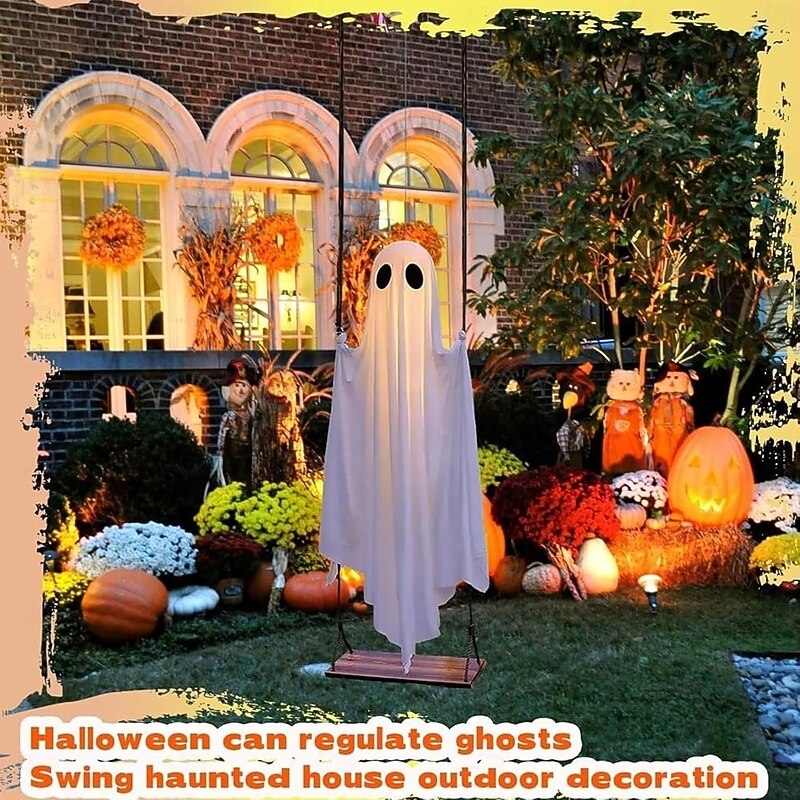 HOT ! Halloween Swinging Ghost Decorations Outdoor 5.9FT Large Hanging Ghost Swing with Remote Control String Lights Spooky Cute Ghosts Decorations for Tree Porch Yard Garden Lawn