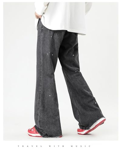 More information about Jeans Pants Trousers Denim Niche Design Micro Flared Inkjet Men's Street Loose Comfortable Daily Commuting