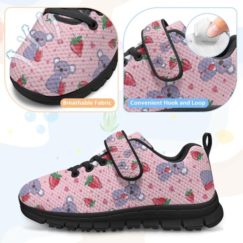 More information about Little Kid Tennis Shoes Slip On Boys Girls Sneakers Casual Running Shoes Woven Breathable with gentle Soled Sports Hook-Loop Outdoor Shoes Koala Strawberry Pattern