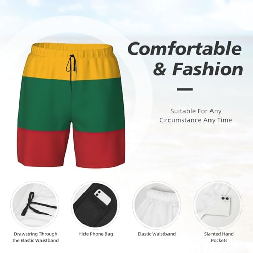 More information about Flag of Lithuania Print Men Stylish Functionality Swim Trunks Breathable Beach Shorts Surfing Gym Fishing