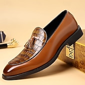 More information about Men's Brown Crocodile Pattern Tassel Loafers – Polished Slip-On Dress Shoes for Business Meetings, Weddings and Formal Events