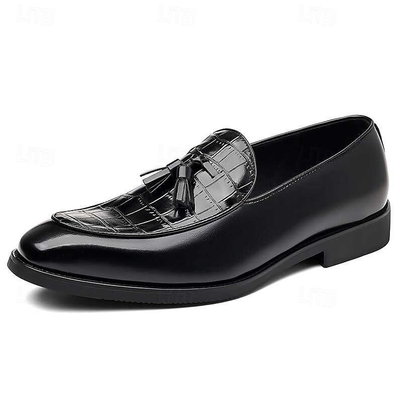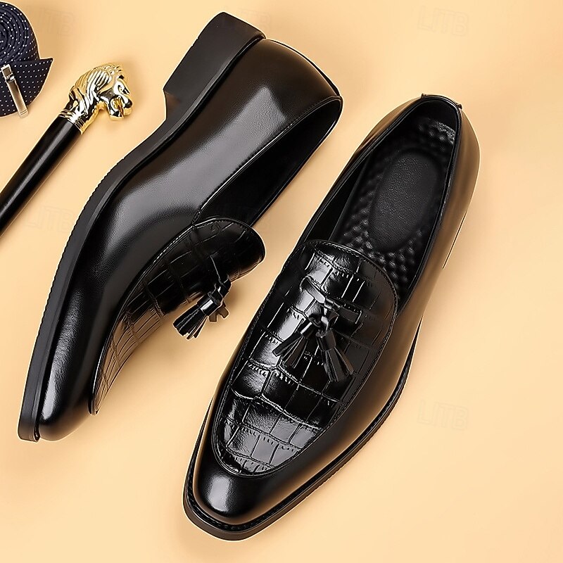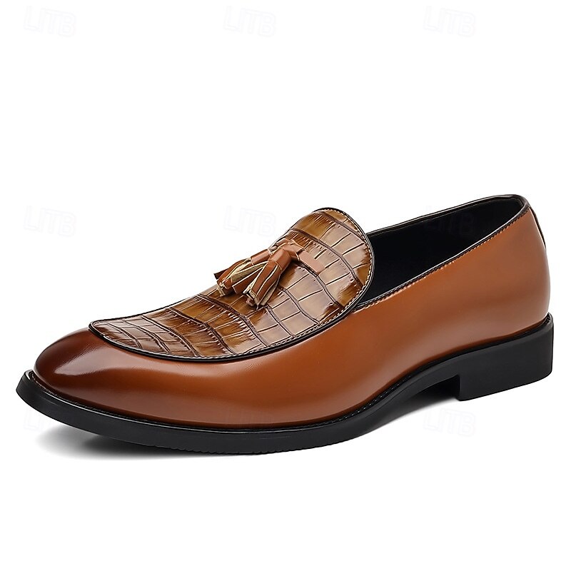 HOT ! Men's Brown Crocodile Pattern Tassel Loafers – Polished Slip-On Dress Shoes for Business Meetings, Weddings and Formal Events