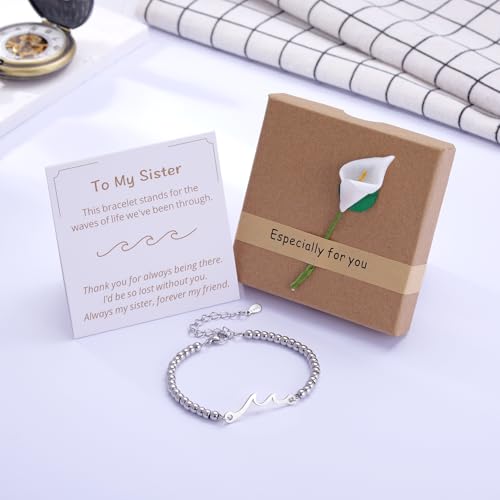 • Sisterhood Friendship Gift for Sister: Whether it's a birthday, Christmas, graduation, or simply a moment to say "thank you" to your sister, this bracelet makes a meaningful and timeless gift. The emotional value behind the wave charm and the heartfelt message card ensures that it will be treasured as a reminder of the strength of your relationship