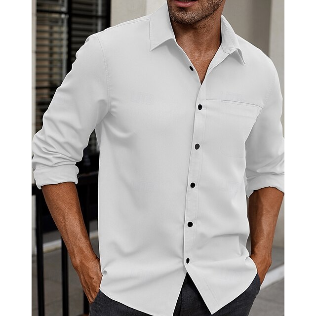 Men's Shirt Summer Shirt Casual Shirt Beach Shirt Button Up Shirt White Burgundy Army Green Long Sleeve Plain Lapel Vacation Hawaiian Button-Down Clothing Apparel Polyester Fashion Casual Comfortable 9