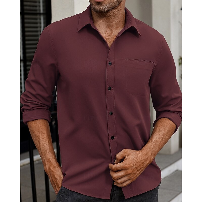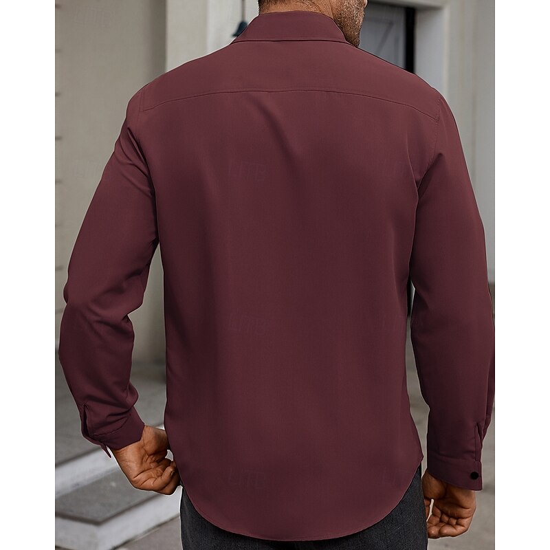 More information about Men's Shirt Summer Shirt Casual Shirt Beach Shirt Button Up Shirt White Burgundy Army Green Long Sleeve Plain Lapel Vacation Hawaiian Button-Down Clothing Apparel Polyester Fashion Casual Comfortable