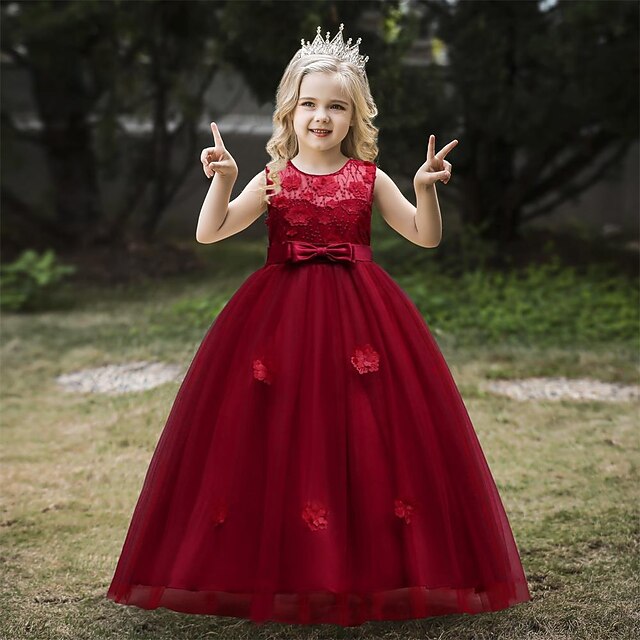 More information about Kids Little Girls' Dress Solid Colored Tulle Dress Party Daily Bow Green Pink Wine Maxi Sleeveless Princess Cute Dresses Spring Summer Slim 4-13 Years