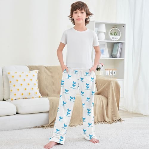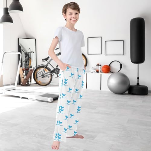 Boy's Pj Pants Blue Jumping Dolphin's Tail Lounge Bottoms Elastic Waist Kids Joggers with Pockets Size 6-14 7