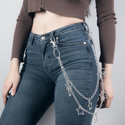 Star Pants Chain Belt, Vintage Pants Chain Layered Wallet Accessories Chains Belts for Women Hip Hop Pant Chains Rock Wallet Belts
