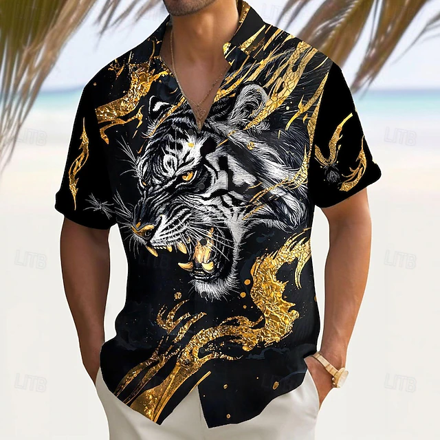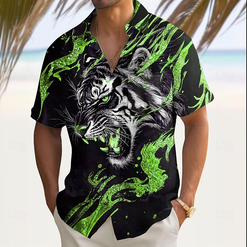 This Men's Roaring Animal Tiger Shirt Summer Shirt Button Up Shirt Short Sleeve Dark Outdoor Vacation Dailywear Summer Spring Turndown 3D Print Collared Shirts Front One Pocket Red Blue Gold Green combines elegant design with practical functionality. Every detail has been carefully considered to ensure you get the premier possible experience. The premium construction means this product will serve you well for years to come.