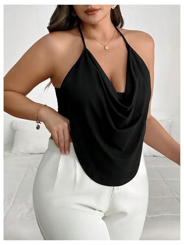 HOT ! Women's Plus Size Halter Tops for Women Draped Cowl Neck Sleeveless Asymmetrical Crop Low Cut Cami Tops