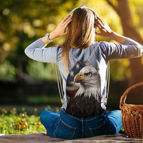 Bald Eagle US Flag Pictures Drawstring Backpack String Bag Sackpack for Gym Shopping Beach Sport Yoga 6