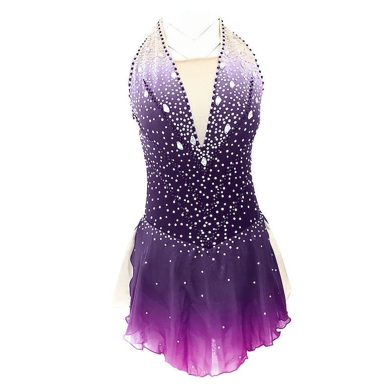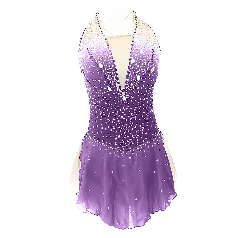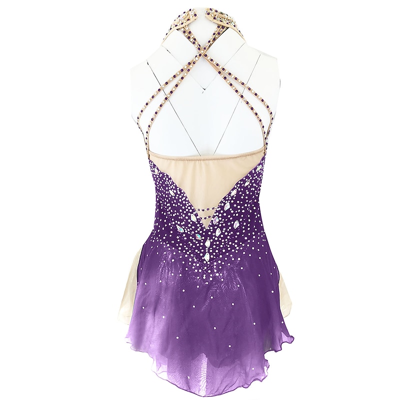 Why Choose Figure Skating Dress Women's Girls' Ice Skating Dress Outfits Light Purple Yan pink Yellow & Yellow Open Back Spandex Micro-elastic Training Skating Wear Handmade vintage Crystal / Rhinestone?