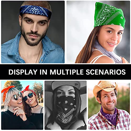 • CLASSIC PAISLEY BANDANA IN BULK: Features a vintage western paisley design. Get a variety of beautiful vibrant large bandannas in all colors to be worn around the head, neck, or arm. Can be worn to cover hair, as a scarf, headband, pocket square or necktie. Provides a stylish look for men, women, children and even pets