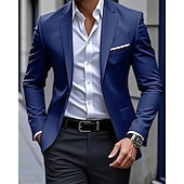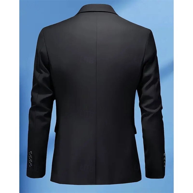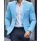 More information about Men's Blazer Business Cocktail Party Wedding Party Fashion Casual Spring Fall Polyester Plain Pocket Buttons Comfortable Single Breasted Blazer Black Navy Blue Sky Blue
