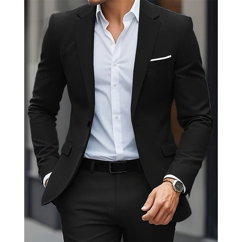 Men's Blazer Business Cocktail Party Wedding Party Fashion Casual Spring Fall Polyester Plain Pocket Buttons Comfortable Single Breasted Blazer Black Navy Blue Sky Blue 11