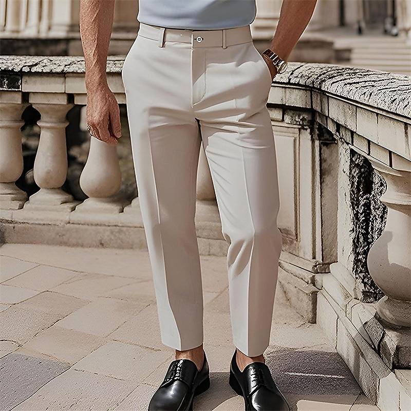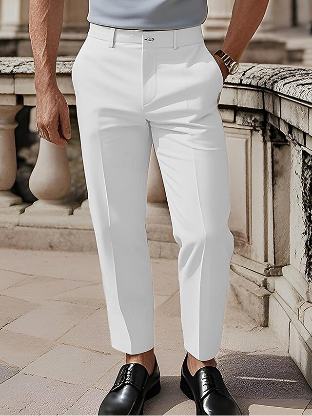 More information about Men's Cotton Pants Chinos Slacks Buttons Pocket Plain Comfort Formal Party Work Fashion Classic Style Black White Micro-elastic
