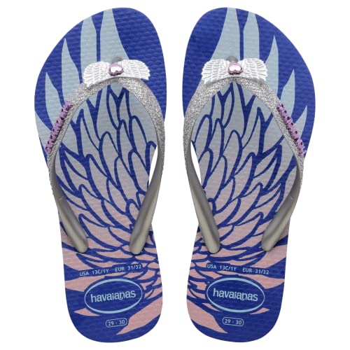 Havaianas Kids Slim Glitter II Flip Flops - Stylish Glitter Sandals - Marine Blue, 7/8 5