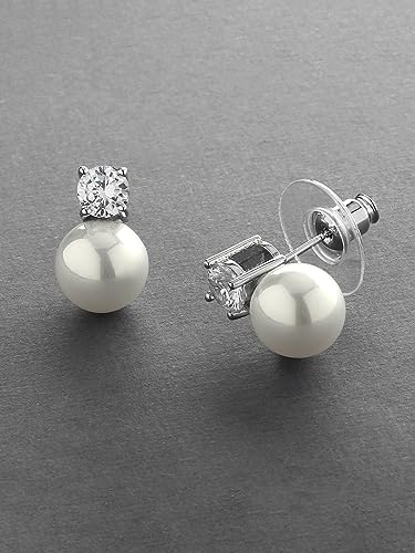 Mariell White Pearl Bridal Earrings with Cubic Zirconia Crystal Top, 9mm White Pearl Stud Earring, Perfect for Brides, Bridesmaids, Wedding Party and Everyday Wear 1