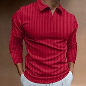More information about Men's Polo Shirts Muscle Shirt Casual Going out V Neck Long Sleeve Sportswear Casual Solid Color Striped Simple Spring & Fall Slim Fit Black White Yellow Wine Red Navy Blue Polo Shirts